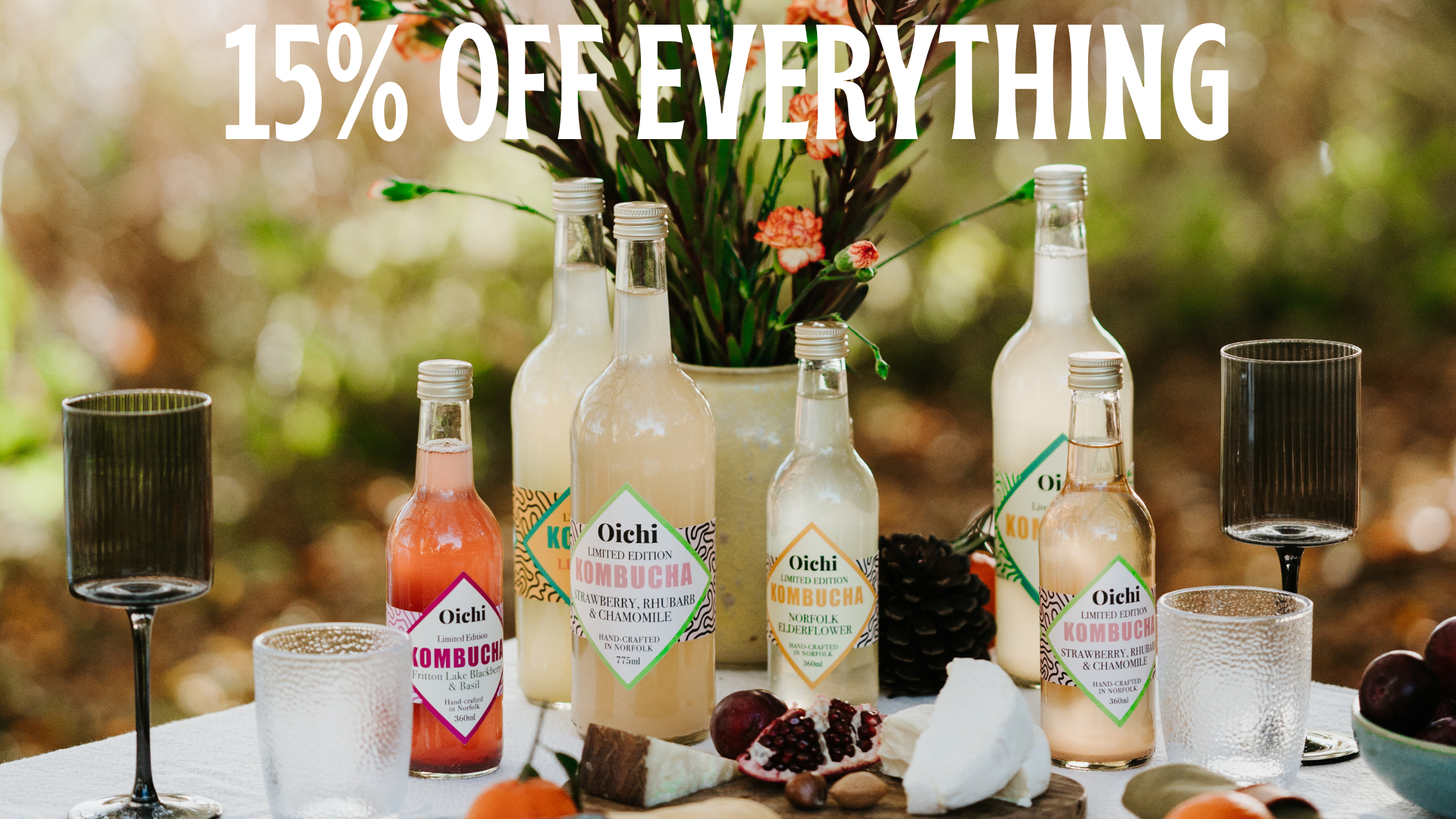 Created for flavour and crafted with passion, Oichi Kombucha is brewed in small batches using traditional techniques in the Norfolk countryside. We are dedicated to making authentic artisan kombucha infusions, made with seasonal, fresh and foraged ingredients. Our award winning drinks have complexity, depth and a unique flavour. Naturally alcohol-free and low in sugar, Oichi Kombucha supports your gut microbiome.